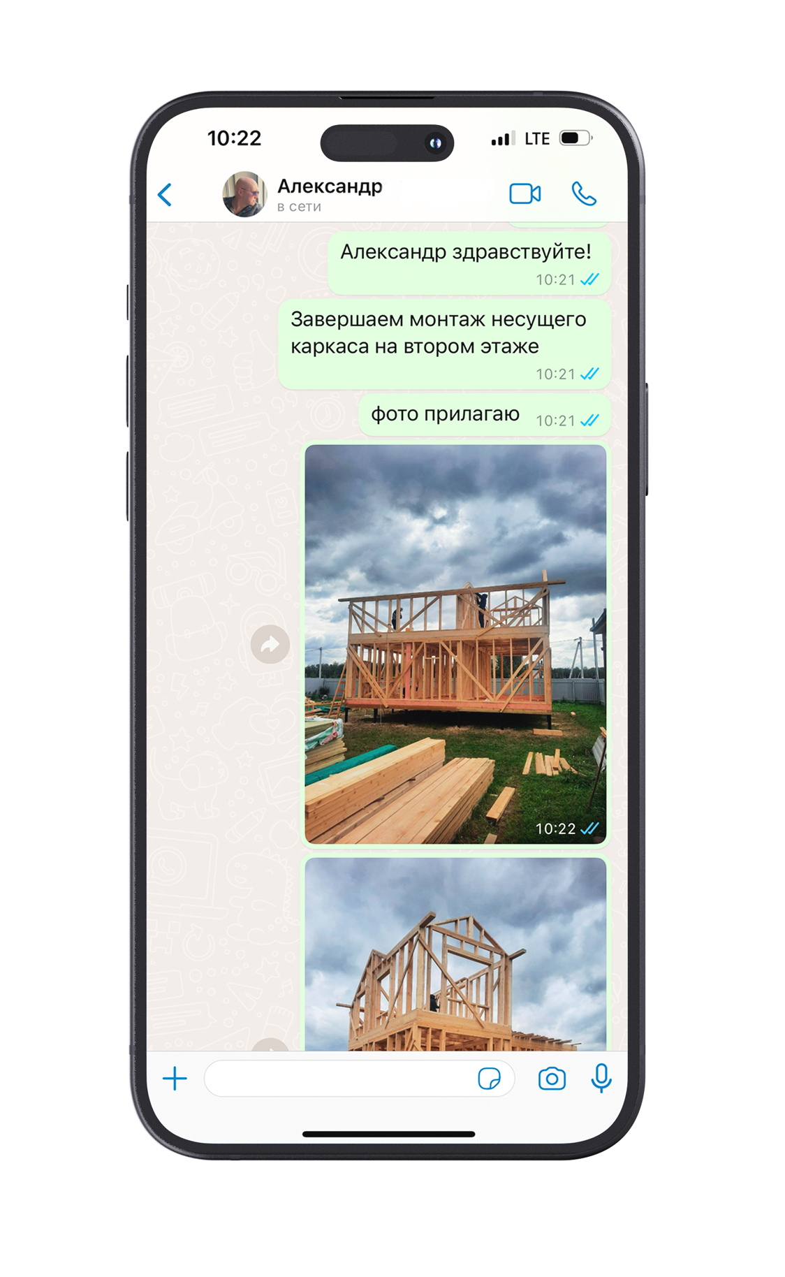 1-2 раза в неделю мы отправляем Вам фотографии и видео в ходе строительства с полноценным отчетом о проделанной работе.